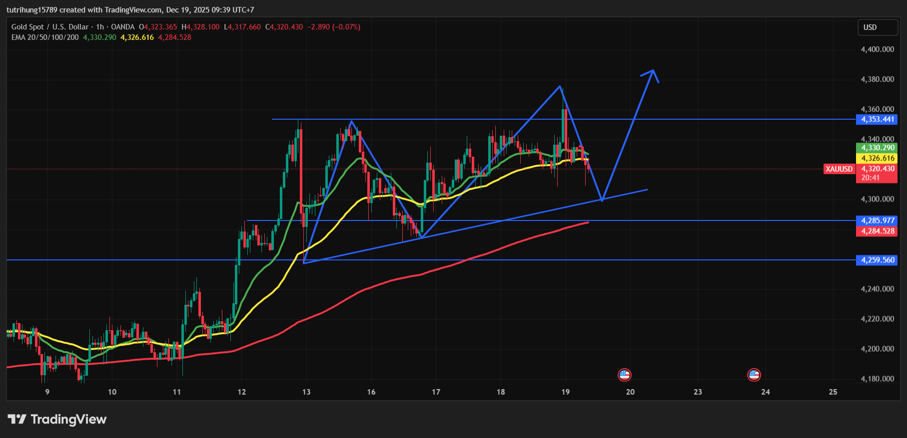 Although after the announcement gold prices were strongly supported and surged to approach the previous peak around the 438x area, they immediately faced heavy selling pressure, pushing gold back to the 432x zone, and this morning prices retested the 431x area.