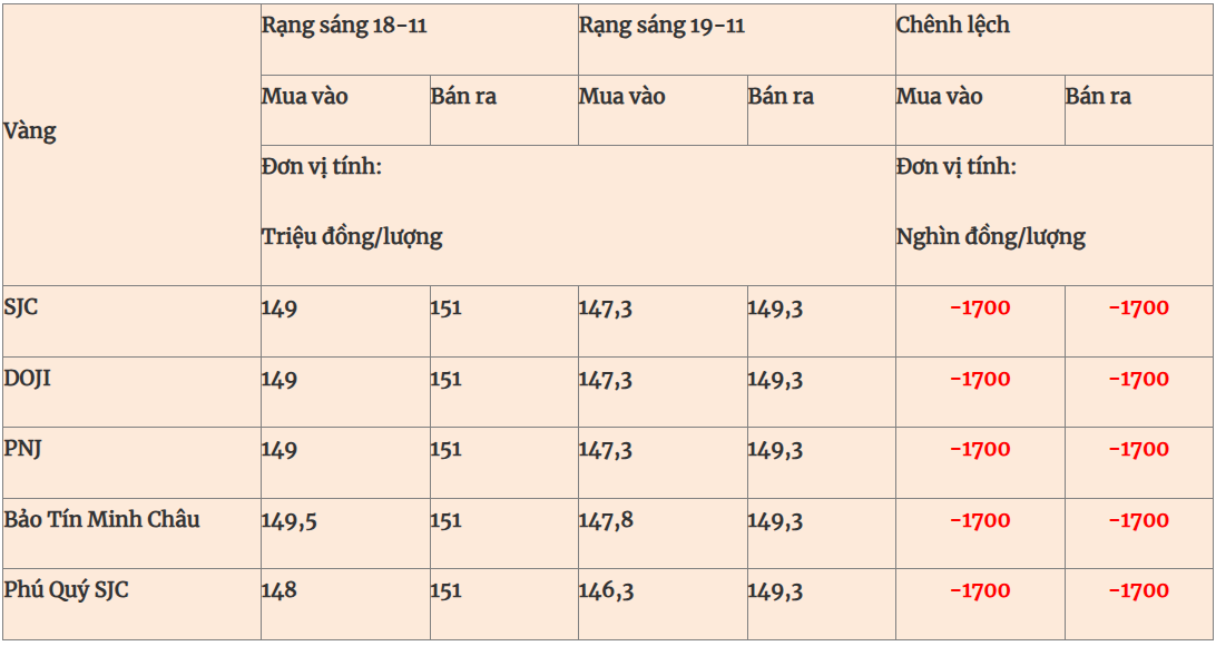 Domestic gold bar prices updated on the morning of November 19 as follows: