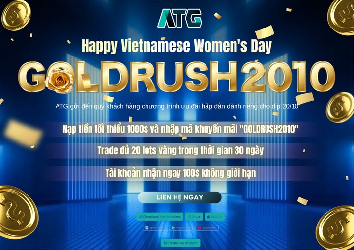 On the occasion of Vietnamese Women’s Day (October 20), ATG proudly presents a special promotion – “GOLDRUSH2010”, a golden opportunity to both honor women and earn attractive rewards while trading with one of the leading financial platforms. 🌟