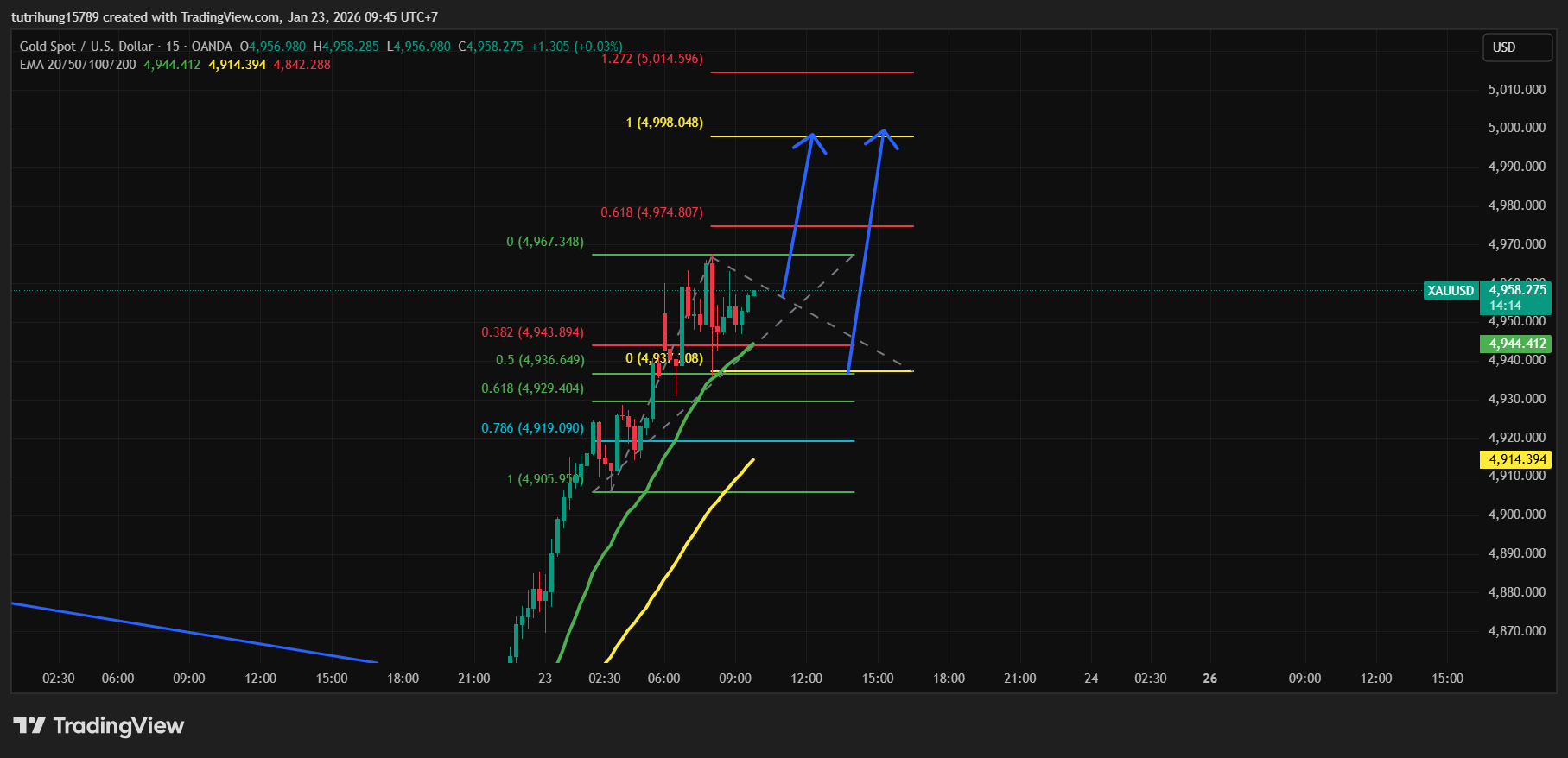Therefore, gold prices have surged sharply, and today there is a strong possibility that they will break out forcefully toward the $5,000/ounce level.