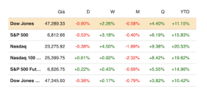 At the close of trading on December 1, the S&P 500 slipped 0.53% to 6,812.63 points, while the Nasdaq Composite fell 0.38% to 23,275.92 points. The Dow Jones Industrial Average dropped 427.09 points (0.9%) to 47,289.33. All three major indexes ended their five-day winning streak.