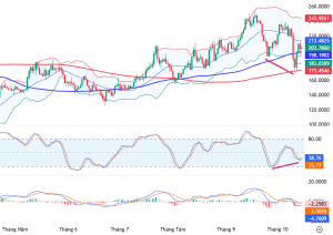 Bên cạnh đó, chỉ báo Stochastic Oscillator tiếp tục suy yếu sau khi cho tín hiệu bán càng thể hiện rõ sự bi quan trong ngắn hạn vẫn đang hiện hữu.