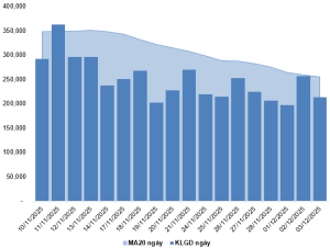 Trong phiên giao dịch ngày 03/12/2025, VN30-Index tăng điểm phiên thứ 4 liên tiếp kèm theo khối lượng liên tục gia tăng và vượt mức trung bình 20 phiên cho thấy tâm lý khá lạc quan của nhà đầu tư tiếp tục hiện hữu.