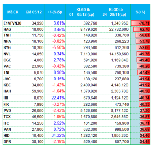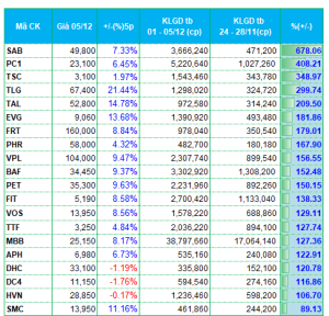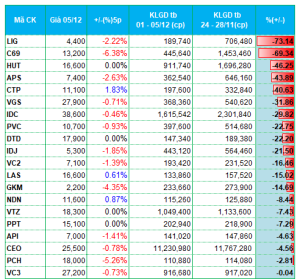 Với nhóm chứng khoán, nhiều mã tăng thanh khoản như VFS, SHS, MBS, EVS ở sàn HNX.