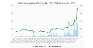 Đợt tăng trần 5 phiên liên tiếp đi cùng thanh khoản bứt phá, trung bình hơn 1.4 triệu cp/phiên. Sau chuỗi tăng nóng, thị giá HID điều chỉnh giảm trong phiên 18/11 xuống còn 5,500 đồng/cp, trước khi bật tăng trở lại trong phiên sáng 19/11 lên 5,600 đồng/cp.
