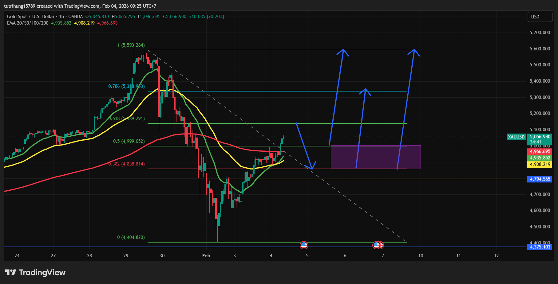 Điều này dấy lên nghi ngờ rằng cuộc đàm phán giữa Mỹ và Iran có thể sẽ bị gián đoạn và ngay lập tức giá Vàng được hỗ trợ tăng mạnh sáng nay tăng hơn 140$ – phá vỡ vùng kháng cự quan trọng 5000$/ounce.