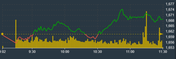Diễn biến chỉ số VN-Index sáng nay.