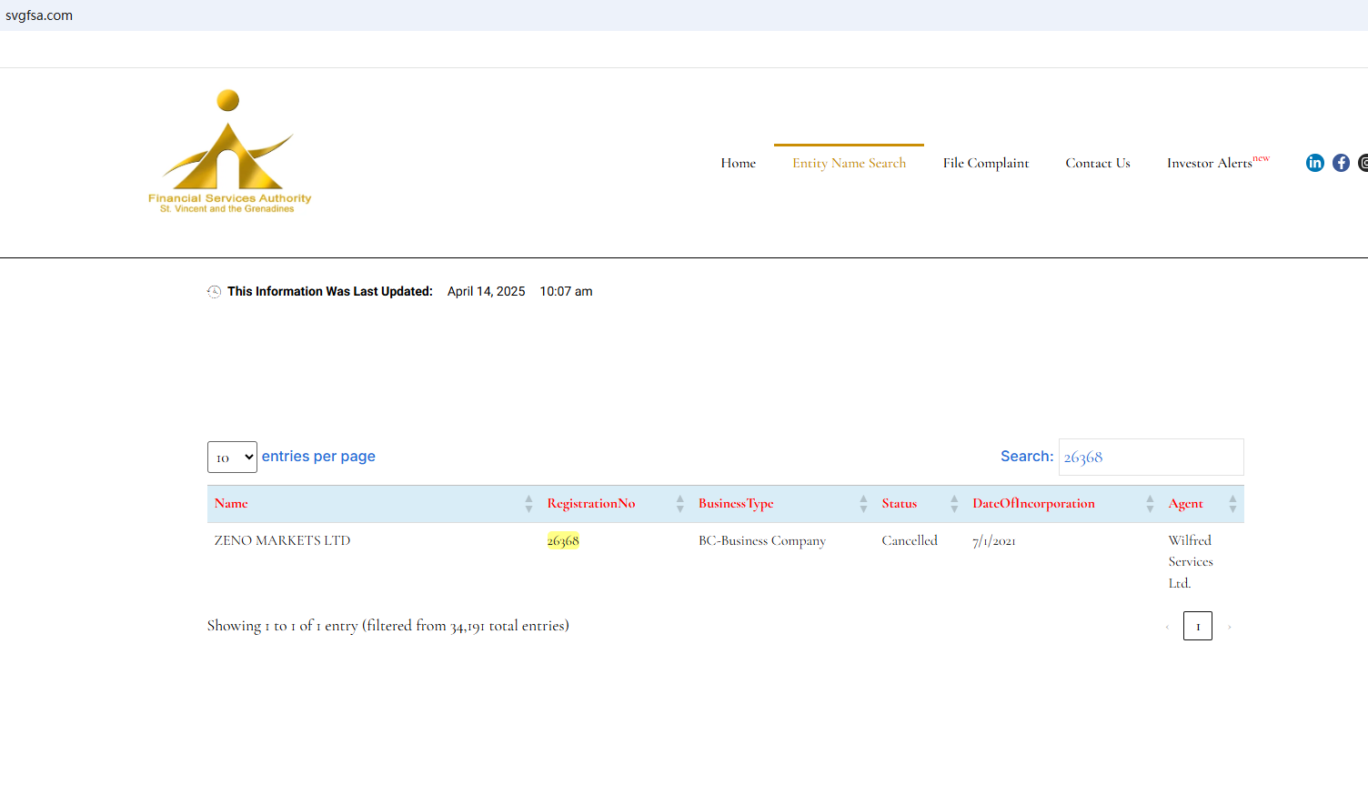 - Nội dung trên trang web chính thức đã không còn hiệu lực, trong khi chứng chỉ do Cơ quan Dịch vụ Tài chính SVG (SVG FSA) cấp đã bị thu hồi.