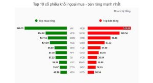 Khối ngoại có phiên mua ròng hơn 1 ngàn tỷ đồng. VIX được mua ròng hơn 326 tỷ đồng. VPB được mua mạnh gần 165 tỷ đồng. MSN được mua gần 150 tỷ đồng.