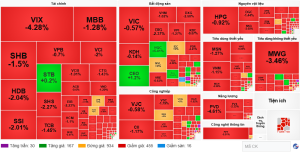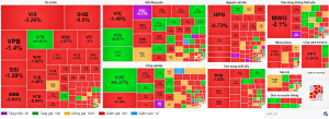 Các nhóm vốn hóa lớn của thị trường là tài chính, công nghiệp và bất động sản cũng đè nặng áp lực lên chỉ số chung với loạt cổ phiếu điều chỉnh trên 1% như VIX, MBB, SHB, VCI, HDB, SSI, SHS, TCB, EIB, CTG; VSC, CII, HAH, VTP, GEX; VHM, DXG, DIG, VPI và PDR.