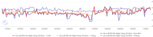 Mặt bằng lãi suất liên ngân hàng đã hạ nhiệt nhưng vẫn neo cao. Lãi suất qua đêm tăng từ 5.82%/năm cuối tuần 07/11 lên 6.1% trong ngày 11/11, trước khi giảm về 5.4% vào ngày 13/11. Giá trị giao dịch bình quân qua đêm tăng 5%, lên hơn 730 nghìn tỷ đồng/ngày.