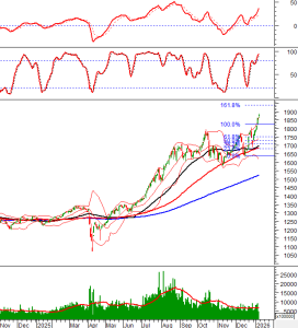 Chỉ số tiếp tục bám vào Upper Band của Bollinger Bands và mục tiêu mới sẽ là vùng 1,935-1,950 điểm.