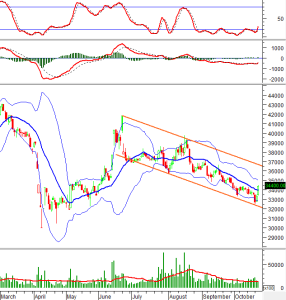 Mặt khác, chỉ báo Stochastic Oscillator đã vượt lên khỏi vùng quá bán (Oversold) sau khi cho tín hiệu mua trong khi giá PLX đã cắt lên trên đường Middle của Bollinger Bands. Điều này cho thấy triển vọng phục hồi ngắn hạn đang được củng cố thêm.