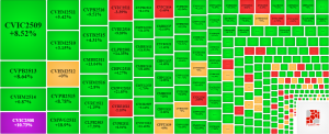 Trong phiên giao dịch ngày 03/12/2025, bên mua quay lại áp đảo thị trường khiến phần lớn các mã chứng quyền tăng giá. Cụ thể, các mã chứng quyền lớn trong nhóm tăng giá là CVIC2509, CVPB2513, CVHM2514 và CMWG2511.
