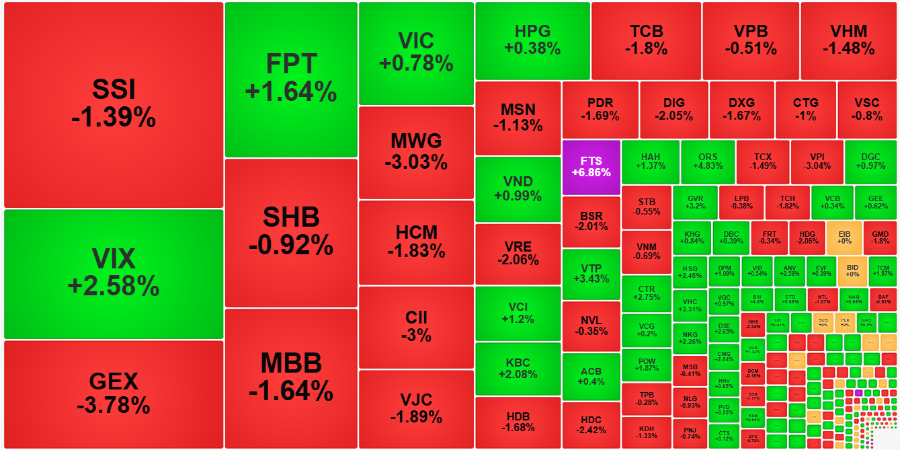 Nhóm cổ phiếu thanh khoản cao nhất thị trường sáng nay vẫn đỏ là chủ đạo do cách mua thụ động.