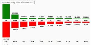 Top 10 cổ phiếu tác động mạnh tới VN-Index năm 2025 (tính đến 26/12/2025)