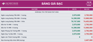 Trong khi đó Ancarat niêm yết giá 2.878 – 2.792 triệu đồng/lượng vào chiều ngày 02/02.