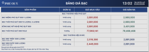 Giá bạc đến ngày 02/02/2026 giảm mạnh theo sau giá thế giới. Công ty Phú Quý niêm yết giá mua – bán ở mức 2.735 – 2.82 triệu đồng/lượng.