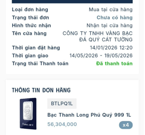 Khi giá bạc giảm, vì không ra cửa hàng mua trực tiếp được nên a.K đã đăng ký mua online tại SBJ. Nhưng khi đặt mua, bạc dự kiến giao vào tháng 7/2026.