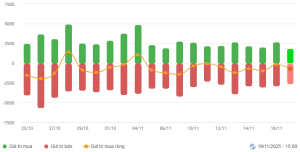 Biến động của dòng tiền từ khối ngoại: Khối ngoại tiếp tục bán ròng trong phiên giao dịch ngày 19/11/2025. Nếu nhà đầu tư nước ngoài duy trì hành động này trong những phiên tới thì tình hình sẽ càng bi quan hơn.