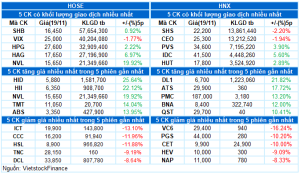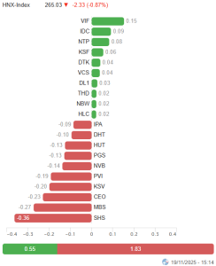 – Các chỉ số chính đồng loạt giảm điểm trong phiên giao dịch ngày 19/11. VN-Index giảm 0.66%, về mức 1,649 điểm; HNX-Index cũng giảm 0.87%, xuống còn 265.03 điểm.