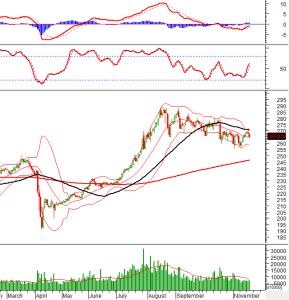 VN-Index chững lại đà tăng và test lại đường Middle của Bollinger Bands. Đây là ngưỡng hỗ trợ mà chỉ số cần giữ vững để duy trì đà phục hồi trong ngắn hạn. Các chỉ báo Stochastic Oscillator và MACD vẫn duy trì tín hiệu mua trong bối cảnh thanh khoản dần cải thiện. Nếu khối lượng giao dịch vượt mức trung bình 20 ngày trong những phiên tới thì triển vọng của chỉ số sẽ tích cực hơn.