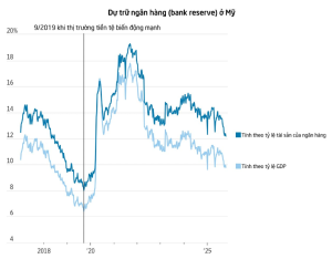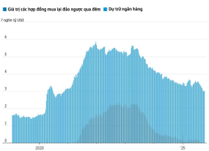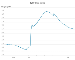 Kể từ năm 2022, khi bảng cân đối đạt đỉnh gần 9.000 tỷ USD, Fed đã bắt đầu để các tài sản đáo hạn tự động rút khỏi hệ thống mà không tái đầu tư, kéo theo sự sụt giảm dự trữ ngân hàng.
